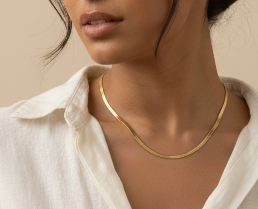 Unsere Essence Halskette überzeugt durch ihr glattes, fließendes Design und ihren eleganten Glanz. Erhältlich in vier Breiten – 1 mm, 3 mm, 4 mm und 5 mm – bietet sie für jeden Stil die perfekte Variante, ob dezent oder auffällig. Das hochwertige 18K vergoldete Edelstahlmaterial sorgt für langlebigen Glanz und angenehmen Tragekomfort.