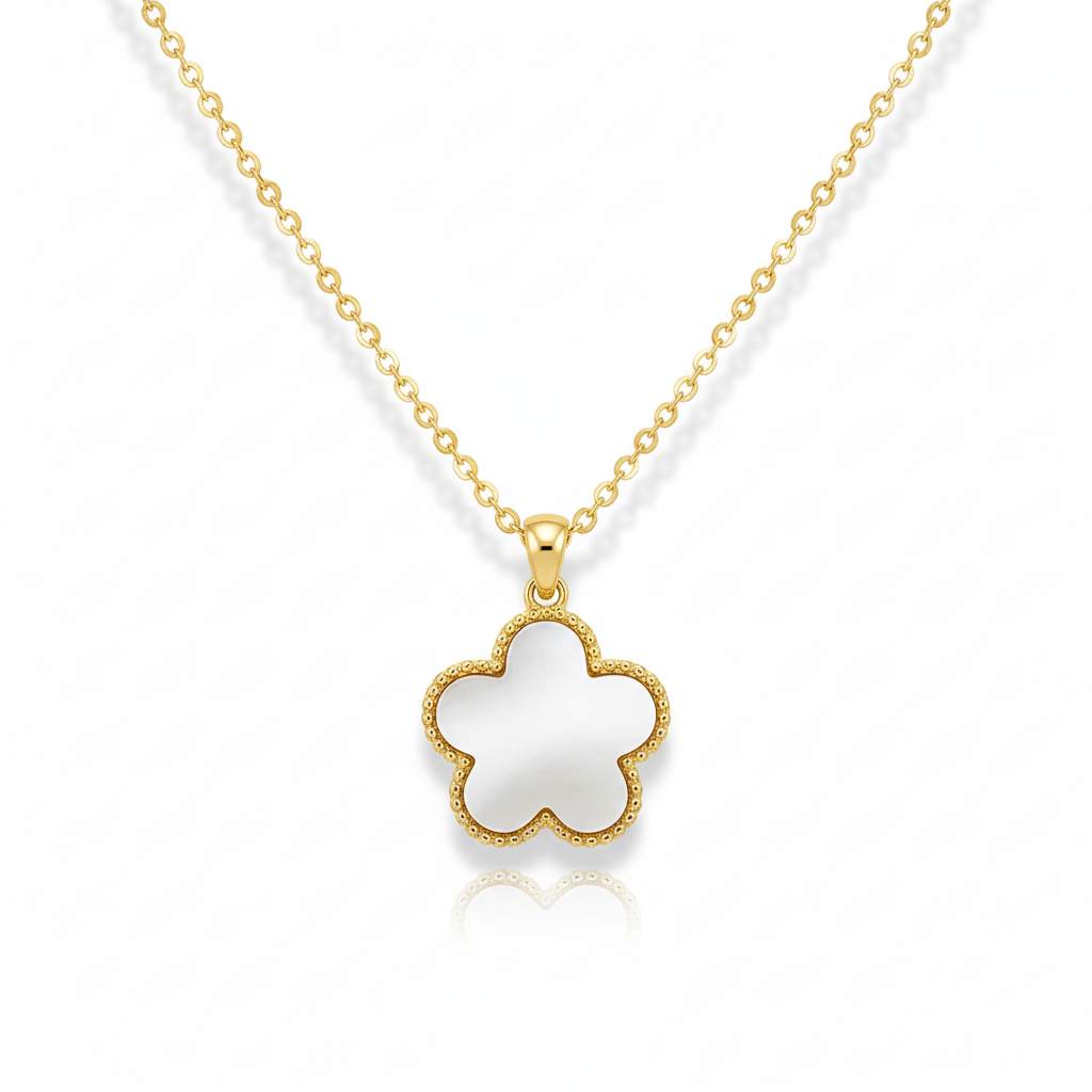 Die Blossom Halskette verleiht jedem Look eine zarte, feminine Note. Der vergoldete Anhänger in sanfter Blütenform ist mit einer schimmernden Perlmutt-Einlage versehen, die das Licht edel reflektiert. Ein harmonisches Zusammenspiel aus Eleganz und Leichtigkeit – perfekt für Alltag und besondere Momente.